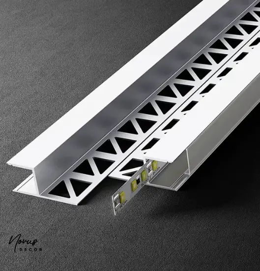 Profilul inchidere aluminiu banda LED multifunctional este proiectat pentru aplicatii complexe de finisaj si iluminare, fiind o alegere excelenta pentru arhitecti, designeri de interior si instalatori care cauta o solutie tehnica si estetica de inchidere sau delimitare. Acest profil permite integrarea benzii LED in mod discret si elegant, fie in partea superioara a plintei ceramice, fie ca profil LED incastrat in perete, in colturi sau pentru delimitarea peretilor placati partial.